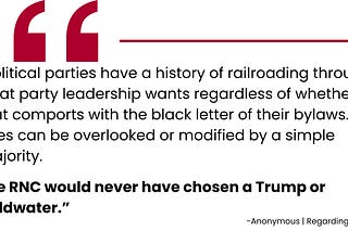 One source puts it plainly: party insiders — not voters — could shape the outcome, noting the RNC “would never have chosen a Trump or Goldwater.”