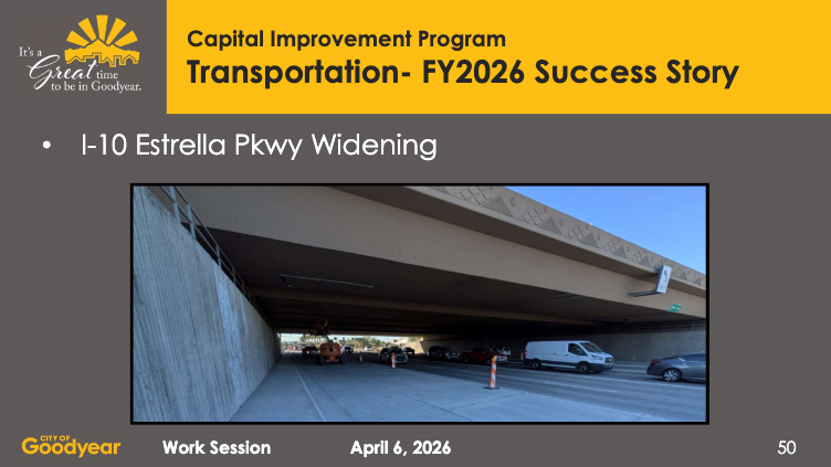 Transportation remains a major focus, with projects aimed at maintaining and expanding Goodyear’s roadway system.