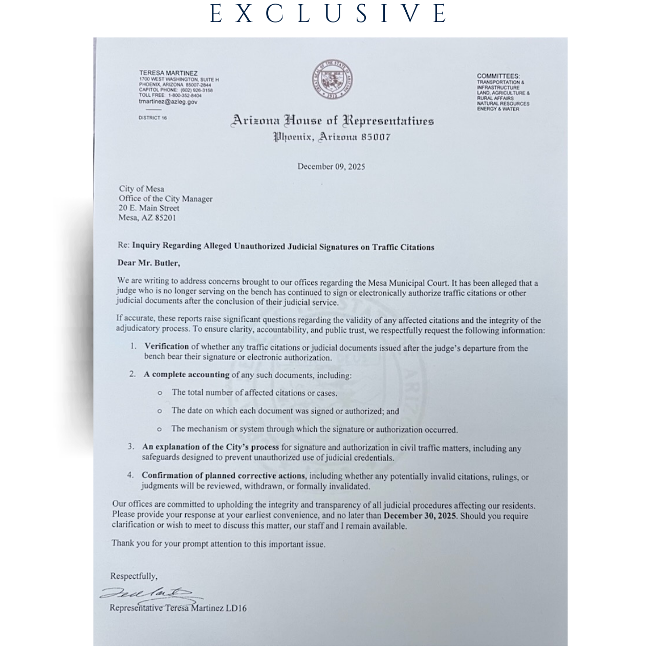 The City of Mesa is now in the hot seat with Arizona state lawmaker Rep. Teresa Martinez filing this letter demanding answers.