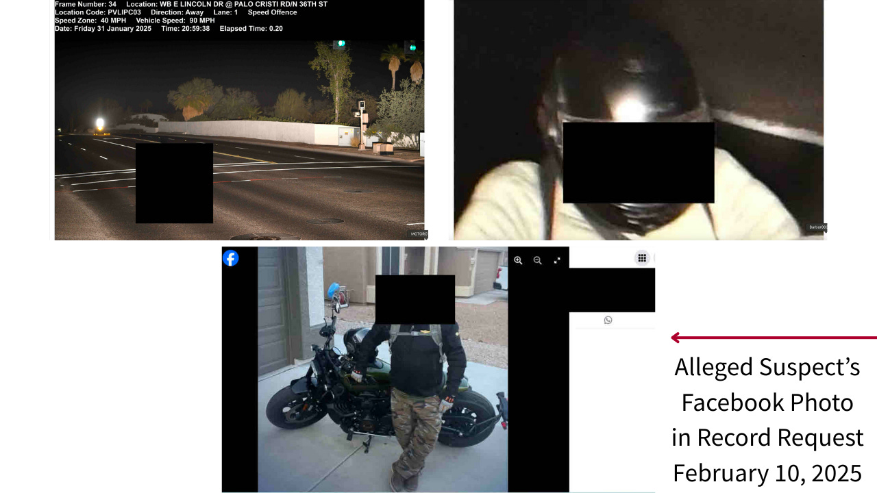 Most notable from last night’s meeting was what wasn’t said: the lack of serious debate over mass surveillance and privacy. Records from Paradise Valley show Verra Mobility’s cameras don’t just ticket speeders—they record faces, helmets, vehicles, and license plates. That data is stored and can later be cross-matched with social media to identify suspects.